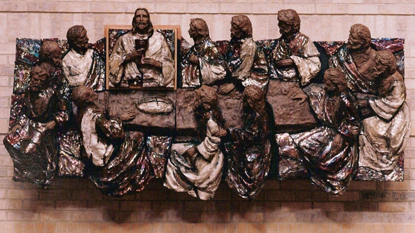 9 feet across x 4 feet in height; fired clay with raku glaze