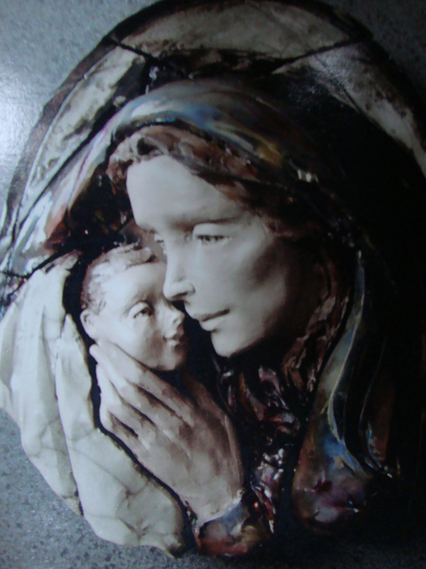 Mother and Child; fired clay with raku glaze; 15" x 9" ;private collection