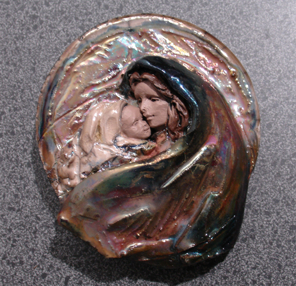 Materials: fired clay with raku glaze and paint