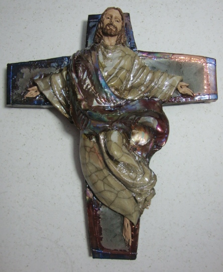 Materials: fired clay; raku glaze; mixed media